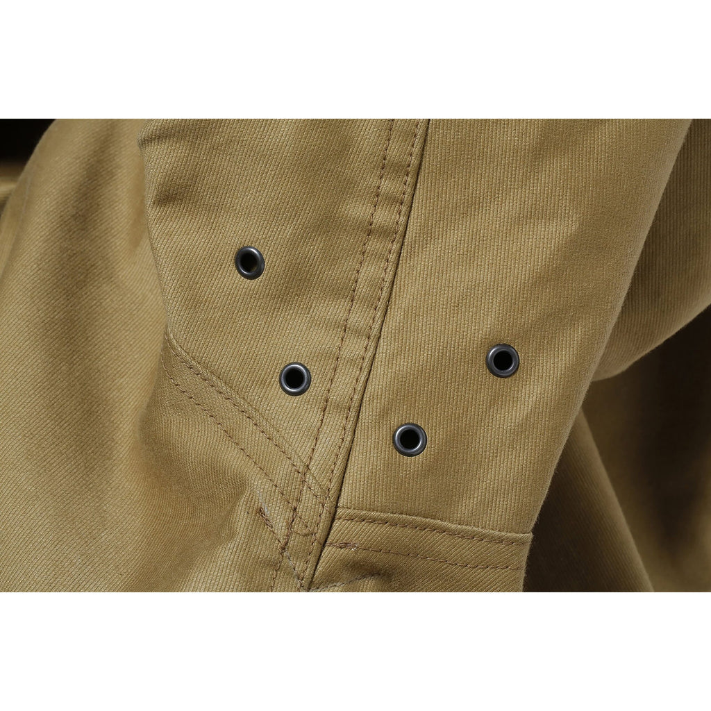 • Original teardrop hand-warmer “D” pockets, lined with golden brown cotton corduroy.