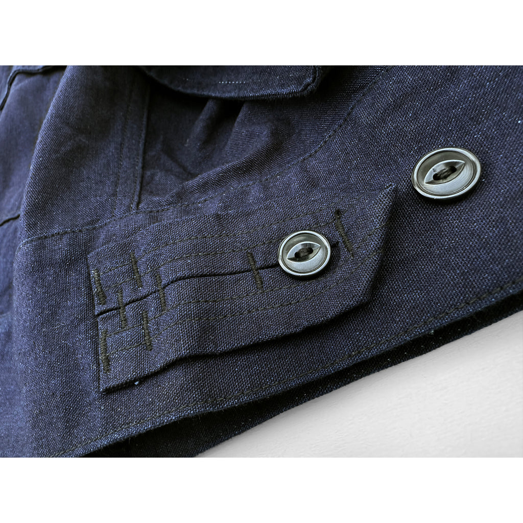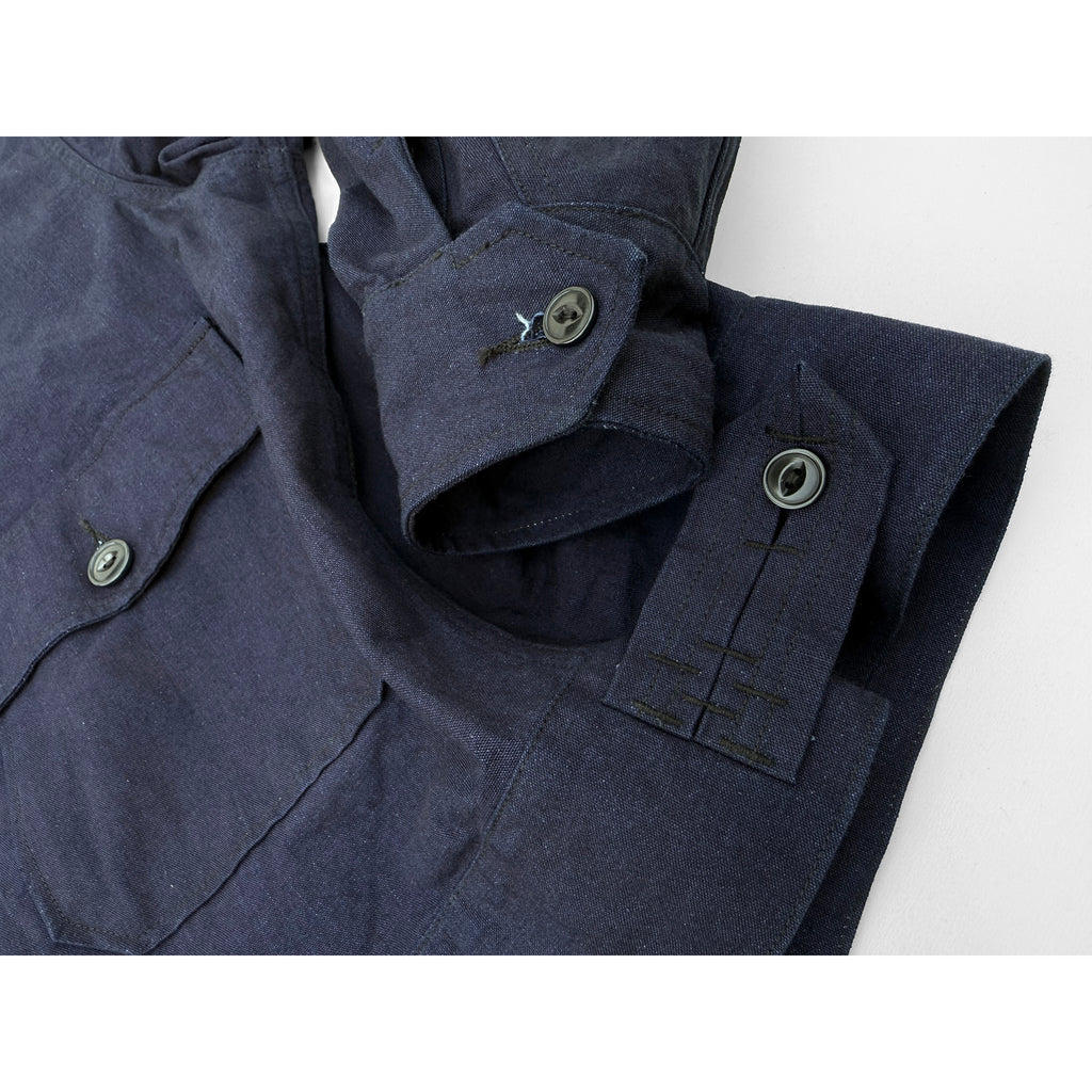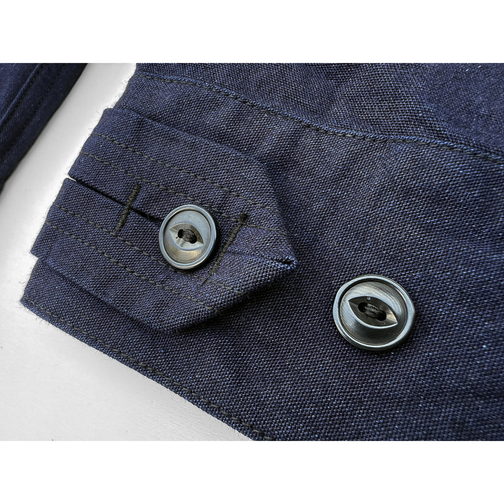 Dark indigo warp x indigo weft canvas, 9 Oz, milled in Japan.
